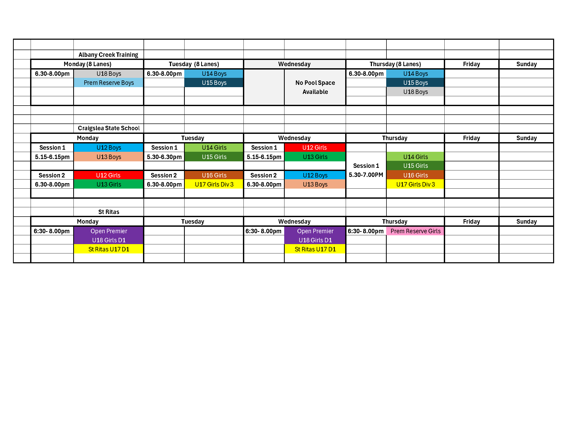 accommodate coaches but the venues will be unlikely to change. The training schedule will commence in the beginning of Term 4 and will